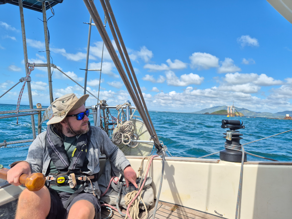 Looking at the weather forecast, we decided that today is the nicest day to sail back. So we hoisted the anchor and set main in first reef and dug out the staysail.