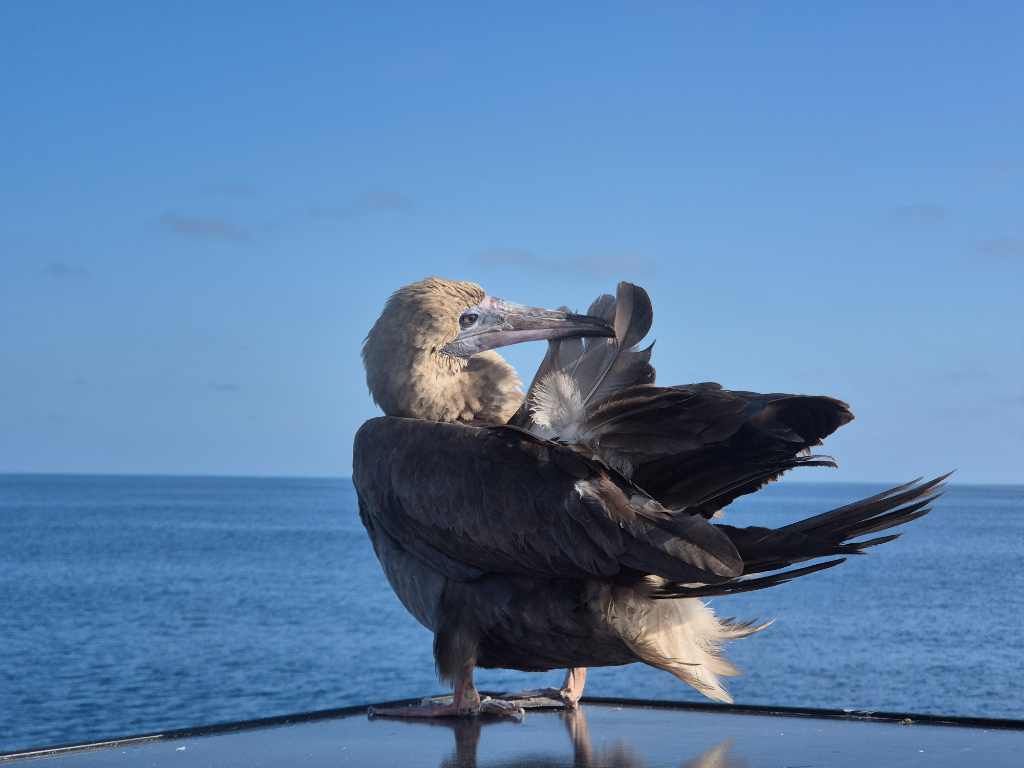 The bird of the day was a brown booby sitting at the aft solar panel.