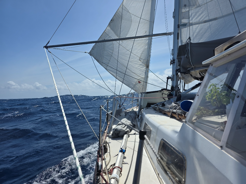 In morning Suski saw a tropicbird circling the boat. These long-tailed birds we haven’t seen since our Atlantic crossing.