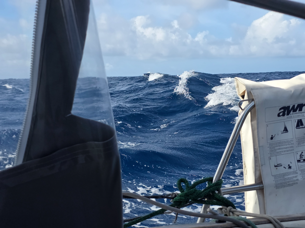 Finally the rain stopped in the early hours. We woke up with the sun, prepared the boat for a proper shakedown after the yard time as the waves were crashing to the reef outside hard. So, motor on, and away! After the reef pass, we were fully in the Atlantic swell again. We slowly pushed through untill we had enough room to start sailing. We hoisted the main in 1st reef and rolled out a sliver of genoa and turned to our rolly downwind sail towards Shelter Bay.